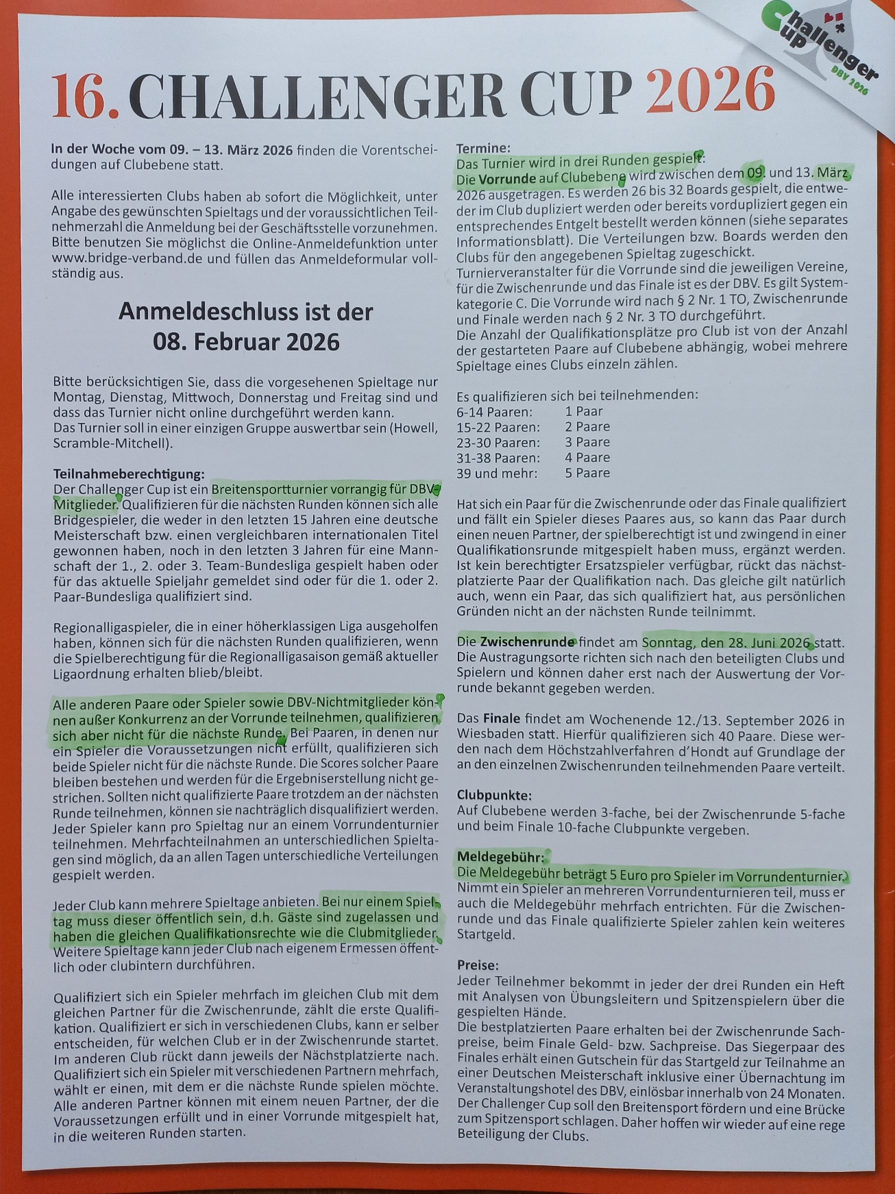 Achtung Raumänderung: Das Clubturnier am 12.02.2026 (Weiberdonnerstag) findet in der Cafeteria der Sportakademie statt.